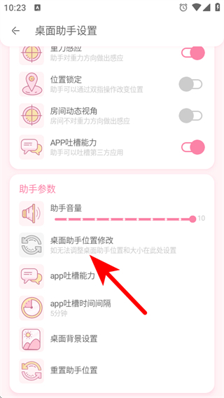 3、在桌面助手設(shè)置頁(yè)面,點(diǎn)擊桌面助手位置修改選項(xiàng),進(jìn)入對(duì)應(yīng)設(shè)置界面。