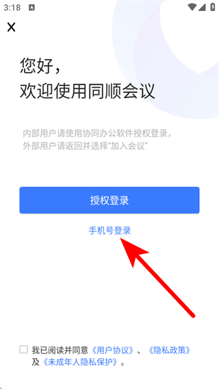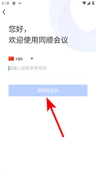 4、輸入手機號獲取驗證碼,即可完成同順會議賬號登錄操作。