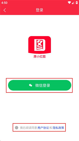 3、勾選同意用戶協(xié)議和隱私政策,點擊“微信登錄”選項,完成登錄操作。