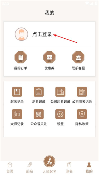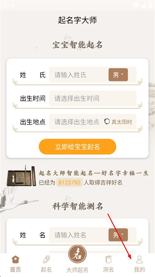 1、打開起名字大師軟件,點擊右下角“我的”。