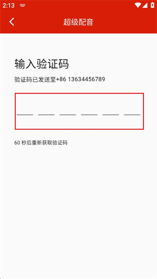 4、在輸入驗證碼頁面,輸入收到的驗證碼完成登錄。