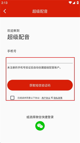 3、進入登錄頁,輸入手機號,點擊“獲取短信驗證碼”并勾選同意協(xié)議。