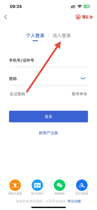 2、在登錄界面點擊法人登錄選項,切換到法人登錄頁面。