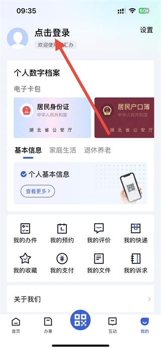 1、打開鄂匯辦app,在我的頁面點擊登錄區(qū)域,進入登錄界面。