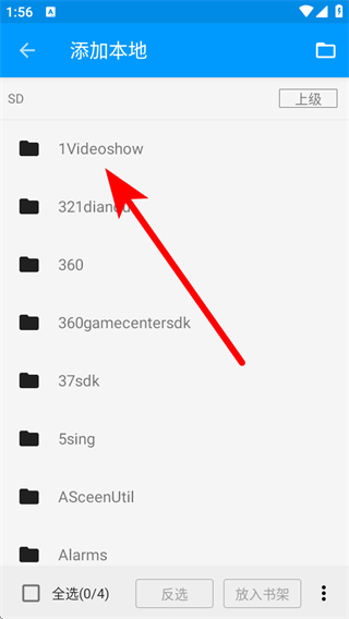 3、在本地文件選擇界面,選擇存放書籍的文件夾,進(jìn)入文件夾內(nèi)容界面。