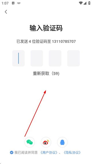 3、在輸入驗證碼頁面輸入收到的4位驗證碼,即可完成注冊操作。