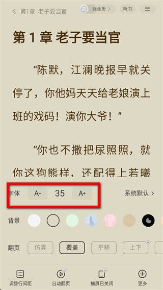 5、每個人可以自己設定個人的閱讀界面,可以設置字號、亮度和翻頁模式和背景顏色;