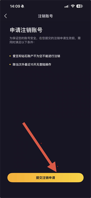 4、在注銷賬號(hào)頁(yè)面,閱讀相關(guān)注銷條件后,點(diǎn)擊提交注銷申請(qǐng),按提示完成后續(xù)操作。