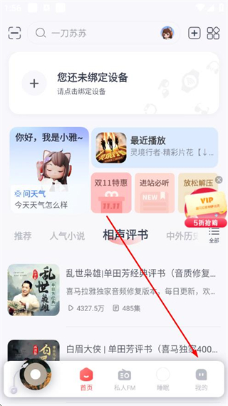 1、打開喜馬拉雅穿戴APP,點(diǎn)擊底部導(dǎo)航欄的我的選項(xiàng)。