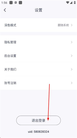 3、在設(shè)置頁面點(diǎn)擊退出登錄,即可完成退出登錄操作。