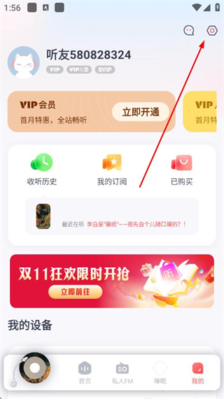 2、在我的頁面,點(diǎn)擊右上角的設(shè)置圖標(biāo)。