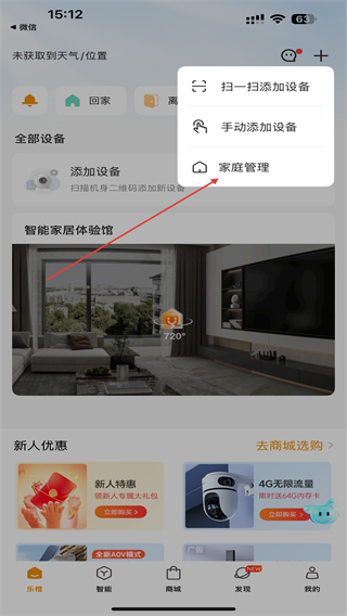 3、進入家庭管理的頁面內,點擊新建家庭的按鈕。