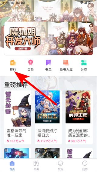 1、在少年夢閱讀APP首頁,點擊排行選項,進入排行頁面。