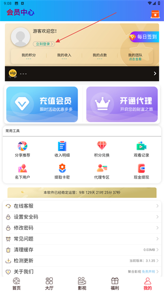 2、進(jìn)入會員中心的頁面內(nèi),點(diǎn)擊用戶昵稱下立即登錄的按鈕。