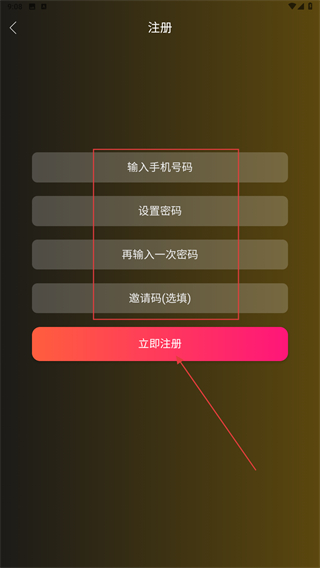 4、輸入手機(jī)號、密碼以及邀請碼后,再點(diǎn)擊立即注冊即可。