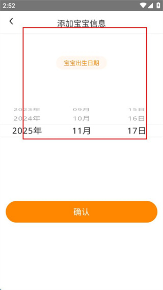 4、在寶寶出生日期選擇頁面選擇寶寶出生日期。