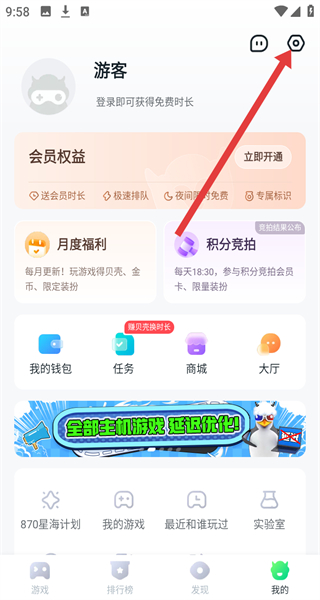 1、在870游戲APP首頁點擊右下角“我的”,進入個人中心頁面。