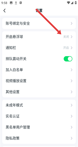 3、設置頁面點擊“開啟懸浮球”,進入懸浮球權限設置頁面。