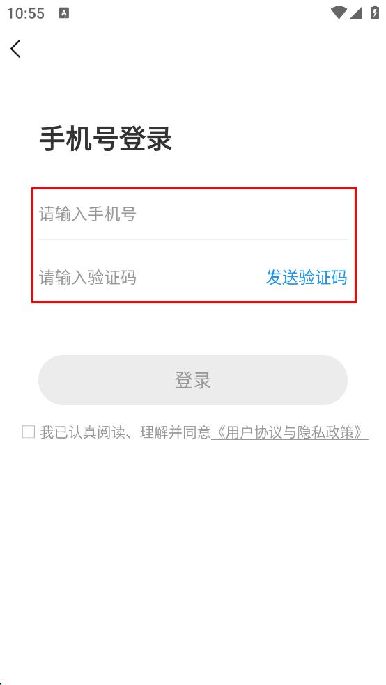 3、在手機(jī)號登錄界面,輸入手機(jī)號,點(diǎn)擊“發(fā)送驗(yàn)證碼”并輸入收到的驗(yàn)證碼。