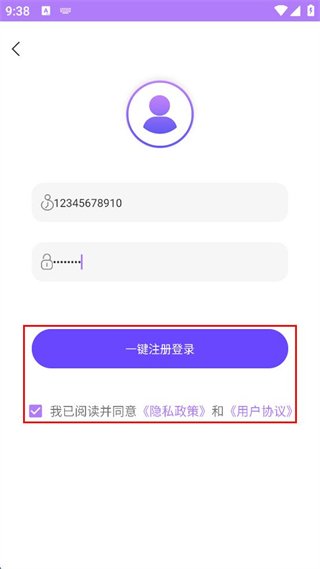 4、勾選我已閱讀并同意隱私政策和用戶(hù)協(xié)議,點(diǎn)擊一鍵注冊(cè)登錄。