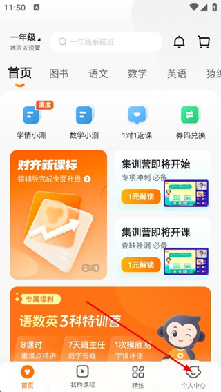 1、打開猿輔導(dǎo)應(yīng)用,點擊底部導(dǎo)航欄中的個人中心選項,進(jìn)入個人中心頁面。
