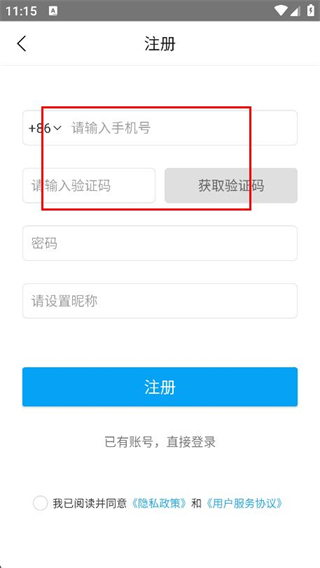 2、在注冊頁面,填寫需要注冊的手機號,并填入收到的驗證碼。