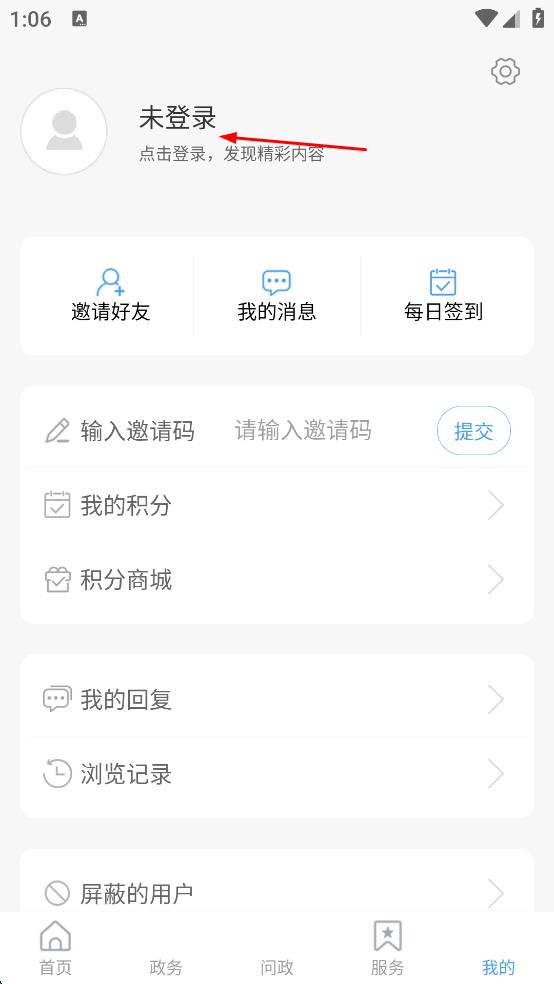 3、在“我的”頁面,點擊“未登錄”選項,進入用戶登錄界面。