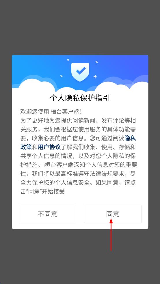 1、打開桓臺客戶端,出現(xiàn)個人隱私保護指引頁面,仔細查看后點擊“同意”按鈕。