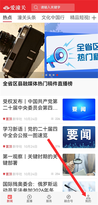 1、打開愛潼關(guān)APP首頁,點擊底部我的,進入個人的頁面。
