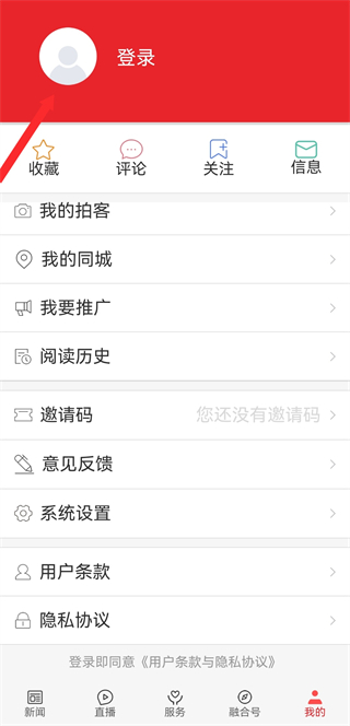 2、在個人的頁面,點擊頭像區(qū)域的登錄,進入登錄選擇界面。