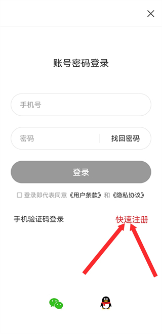 3、在登錄的界面,點擊快速注冊,進入注冊信息填寫頁面。