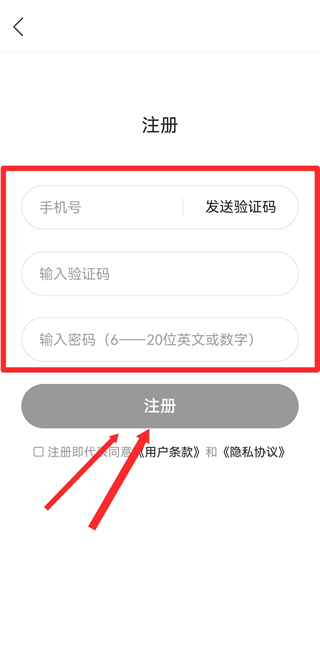 4、在注冊頁面,輸入手機號等信息后點擊注冊,完成賬號注冊操作。
