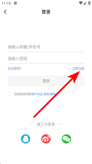 3、在登錄的界面中,點(diǎn)擊立即注冊的按鈕,進(jìn)入注冊的頁面。