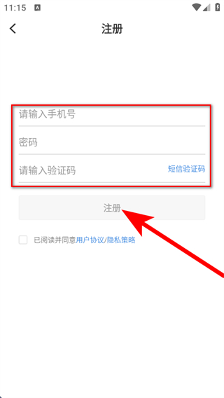 4、依次輸入手機(jī)號、設(shè)置密碼和驗(yàn)證碼,點(diǎn)擊注冊即可完成賬號注冊。