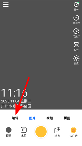 1、打開云聯(lián)水印相機APP,點擊下方編輯,進入編輯頁面。