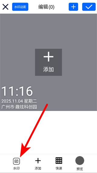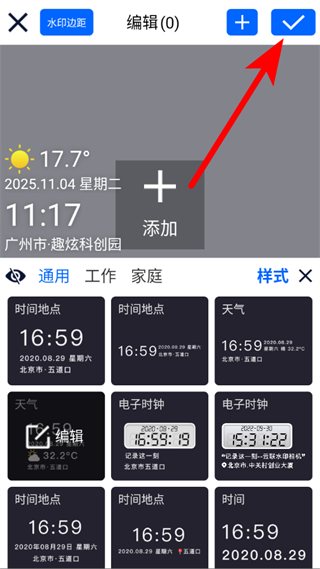4、選擇好水印樣式后,點擊右上角對勾,即可完成云聯(lián)水印相機水印樣式的修改。