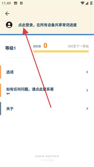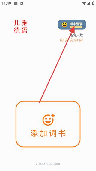 1、打開(kāi)單詞訓(xùn)練營(yíng)APP,點(diǎn)擊上方的尚未登錄按鈕。