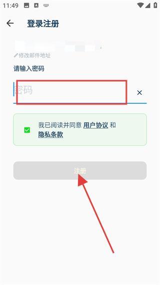 4、輸入密碼,點(diǎn)擊注冊(cè)按鈕,即可完成賬號(hào)登錄操作。