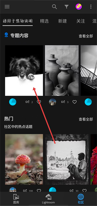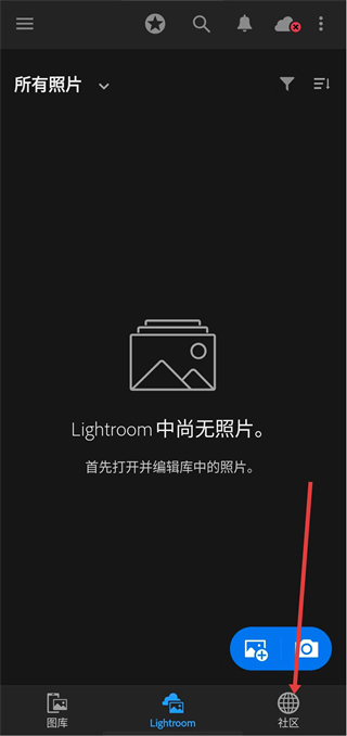 1、打開Lightroom APP,點擊右下角社區(qū)。