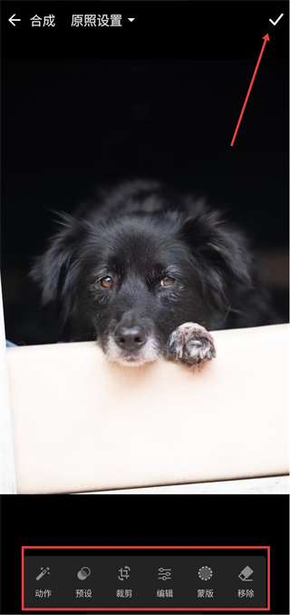 4、使用工具進行圖片編輯,完成后點擊對勾。