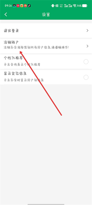 3、在設置頁面找到注銷賬戶選項,點擊進入注銷賬戶確認頁面。