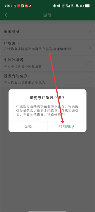 4、在注銷賬戶確認頁面點擊注銷賬戶按鈕,即可完成賬號注銷。