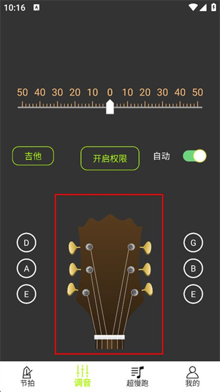 4、登錄后點(diǎn)擊底部“調(diào)音”,即可進(jìn)入吉他調(diào)音界面進(jìn)行調(diào)音操作。