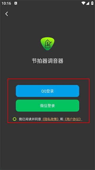 3、進(jìn)入登錄頁(yè)面,勾選同意隱私政策和用戶(hù)協(xié)議,選擇QQ或微信登錄。