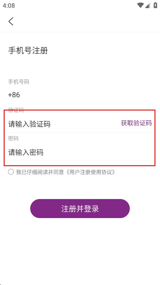 3、在手機(jī)號注冊頁面,先在“手機(jī)號碼”欄中輸入自己的手機(jī)號,接著點(diǎn)擊“獲取驗(yàn)證碼”,待收到驗(yàn)證碼后,在“請輸入驗(yàn)證碼”欄中輸入驗(yàn)證碼,然后在“請輸入密碼”欄中設(shè)置密碼。