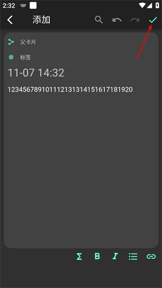 3、輸入完成后,點(diǎn)擊右上角的對(duì)勾按鈕,保存筆記。
