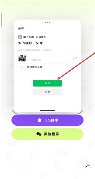 3、在微信授權(quán)彈窗中點擊“允許”,授權(quán)掌上炫舞使用昵稱和頭像。