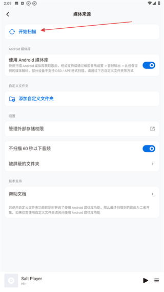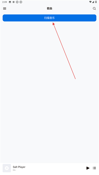 1、啟動(dòng)椒鹽音樂(lè)的APP,進(jìn)入首頁(yè)點(diǎn)擊掃描音樂(lè)的按鈕。