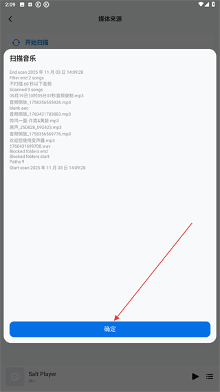 3、點(diǎn)擊后,界面會(huì)彈出掃描到的音樂(lè),再次點(diǎn)擊確定即可完成。