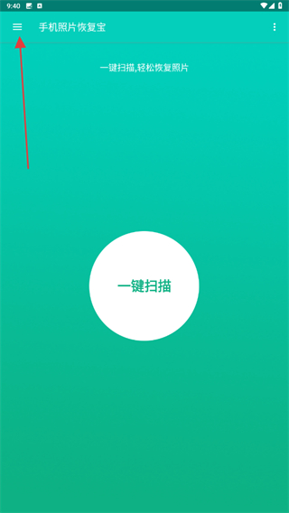 1、打開手機照片恢復APP,在首頁內(nèi)點擊左上角三個橫線的圖標。